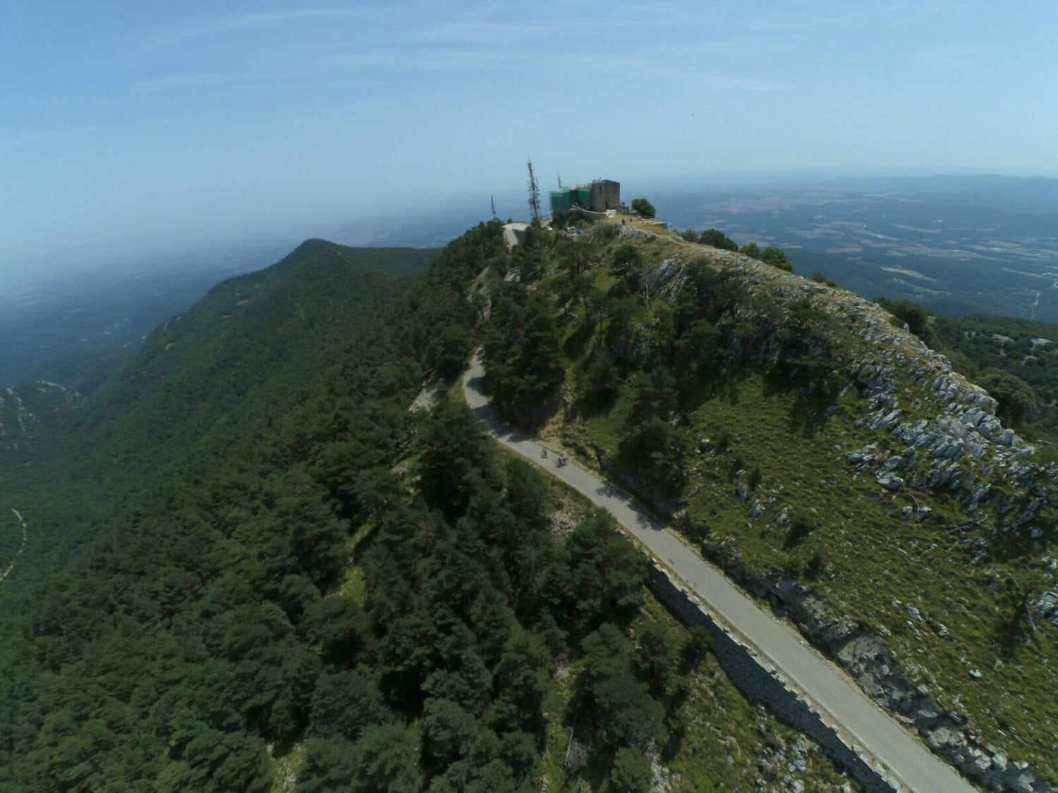 The group reaching the summit of Mare de Deu del Mont, which views to the Mediterranean, the Pyrenees, France and Spain.