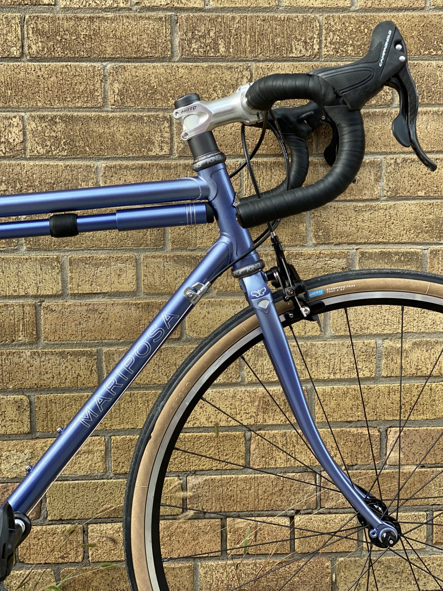 - Fork: Mariposa custom steel fork with clearance for 700C x 35mm tires.