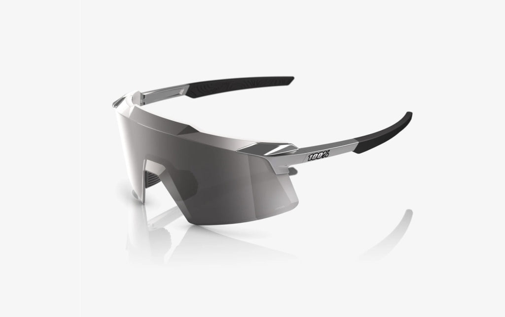100% Aerocraft Sunglasses, Gloss Black Chrome frame - HiPER Silver Mirror Lens