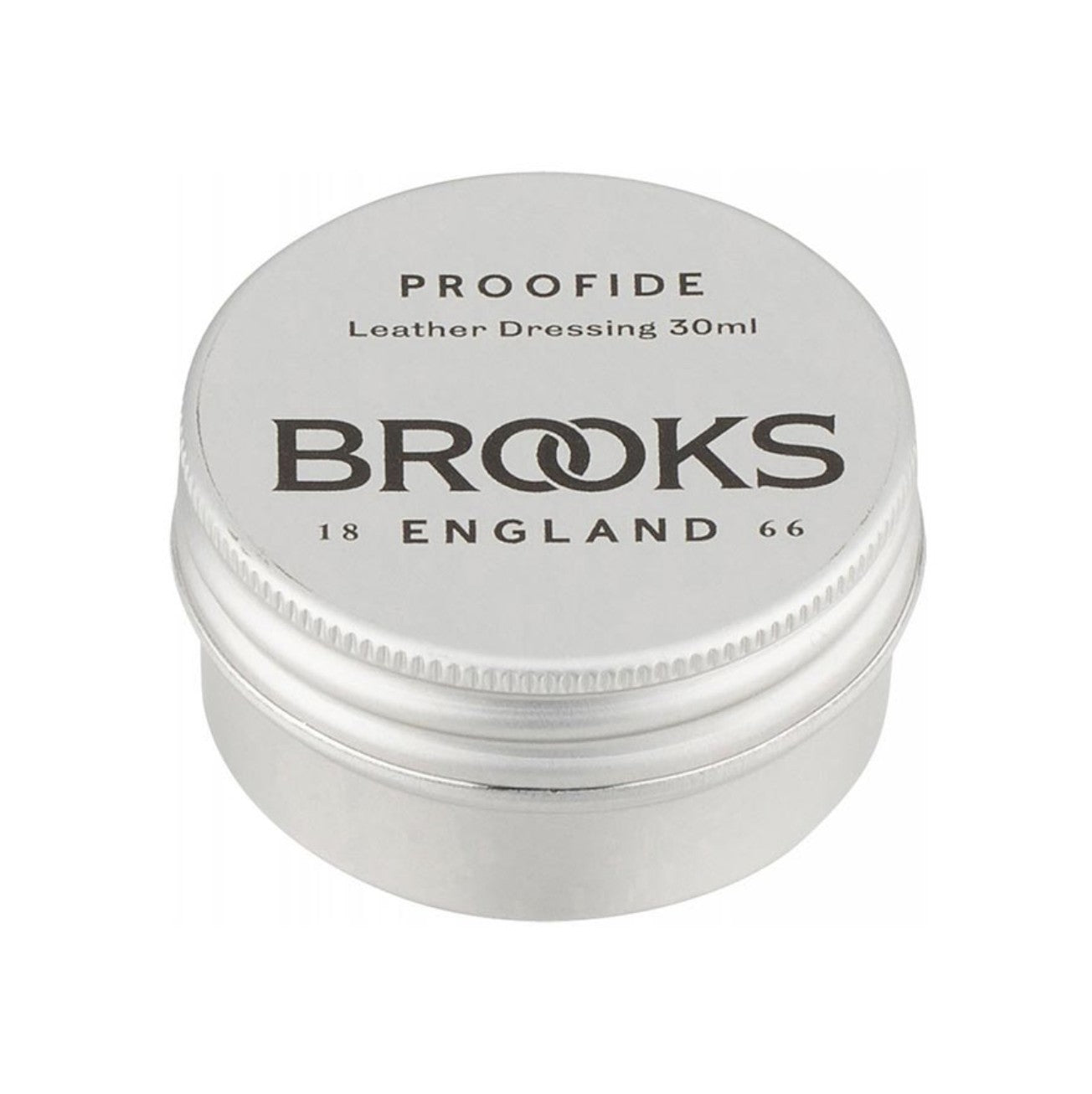 Proofide is the only substance that should be used to care for your Brooks Leather Saddle, specially formulated from natural ingredients to condition, preserve and showerproof. Apply a little of this leather saddle cream to the finished side of the leather. Allow to permeate until dry and then polish off. Also apply Proofide to the underside of the saddle, but leave this coating on to protect against dirt and moisture. It should be used several times during the ‘breaking-in’ period and periodically (3-6 months) thereafter. It is recommended to polish the saddle with a soft cloth before first use.