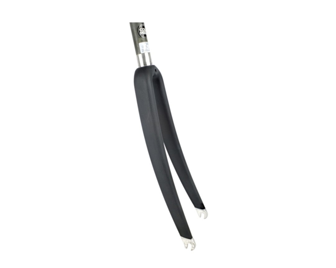The most iconic fork in the Columbus carbon range: clean, elegant lines, the Minimal is a monocoque carbon fork designed for frames with traditional steerers and satisfies a variety of rakes and steerer diameters. The Minimal fork is available both in 1-1/8” diameter and 45 mm rake. Whether it’s a lugged or TIG welded frame, a standard geometry or a frame designed for a small statured rider, the Minimal fork offers a wide range of options, providing framebuilder and riders with the best structural solutions and performance possible. A Timeless model, the Minimal is adopted by classic traditional framebuilders using standard tubing, as well as modern constructions using shaped and oriented tubes.Lightweight road fork made from aeronautical grade muti-layer carbon fibre - The progressive curve of the blades dampens vibrations and gives great stability in extreme conditions.
