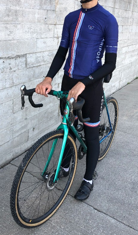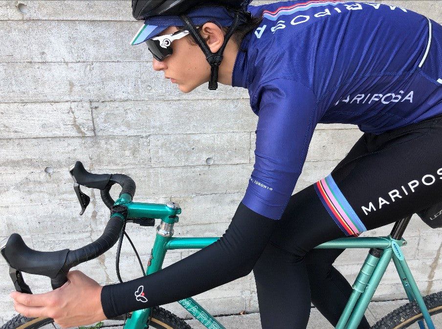 Arm warmers are an essential part of a cyclist's kit, giving the rider temperature control flexibility unpredictable or changing conditions. Mariposa Arm Warmers are constructed using Roubaix fabric, which has a lycra outer and fleece backing for a soft and warm feel. The arm warmers have a silicone gripper holds them securely in place. Sizing is European standard.