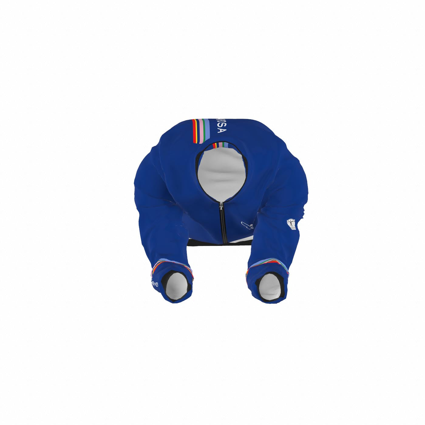 Foldable, lightweight, water repellent and windproof rain jacket with an aerodynamic race specific cut.