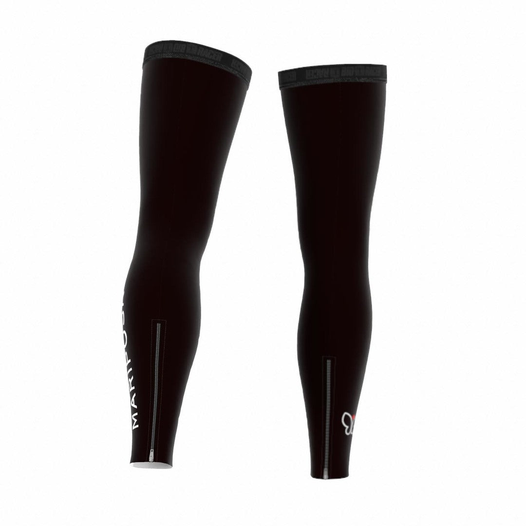 Thermal, water repellant, breathable leg warmers with zippers at the ankle. Made with Bioracer Tempest fabric.