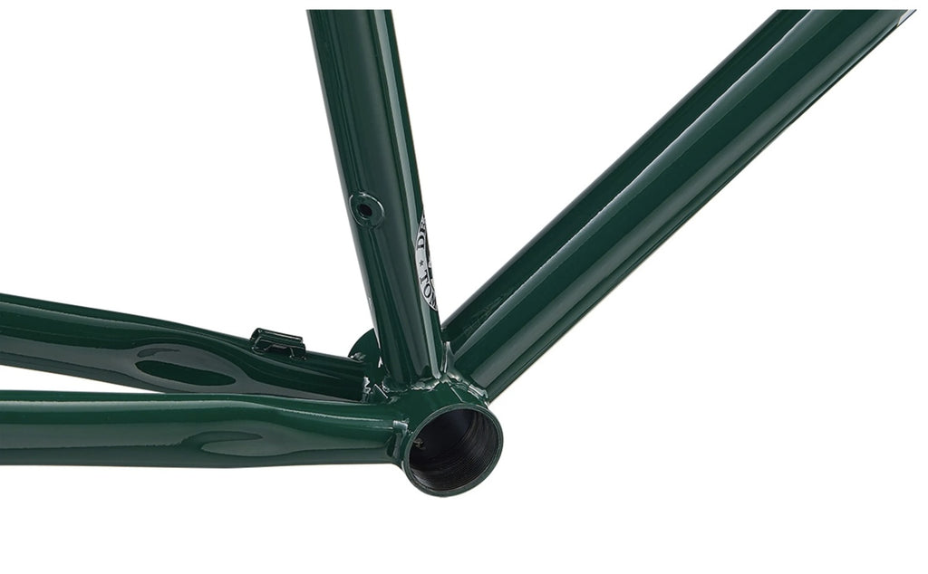 Steeped with more than 50 years of frame-building heritage, innovation, exploration, and lots of riding, the classic lines of this beautiful steel frame and carbon fiber fork unite with modern building techniques and proven materials to deliver a contemporary bicycle that’s wonderfully comfortable for long days in the saddle, nimble and stiff enough to win the sprint for that sign, and adequately adaptable to endure roads that might lack proper pavement.