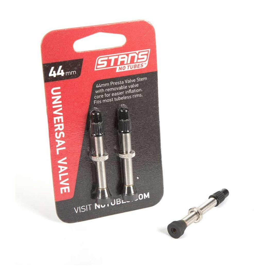 Stan's No Tubes Tubeless Valves, presta. Available in 35mm, 44mm, and 55mm lengths.